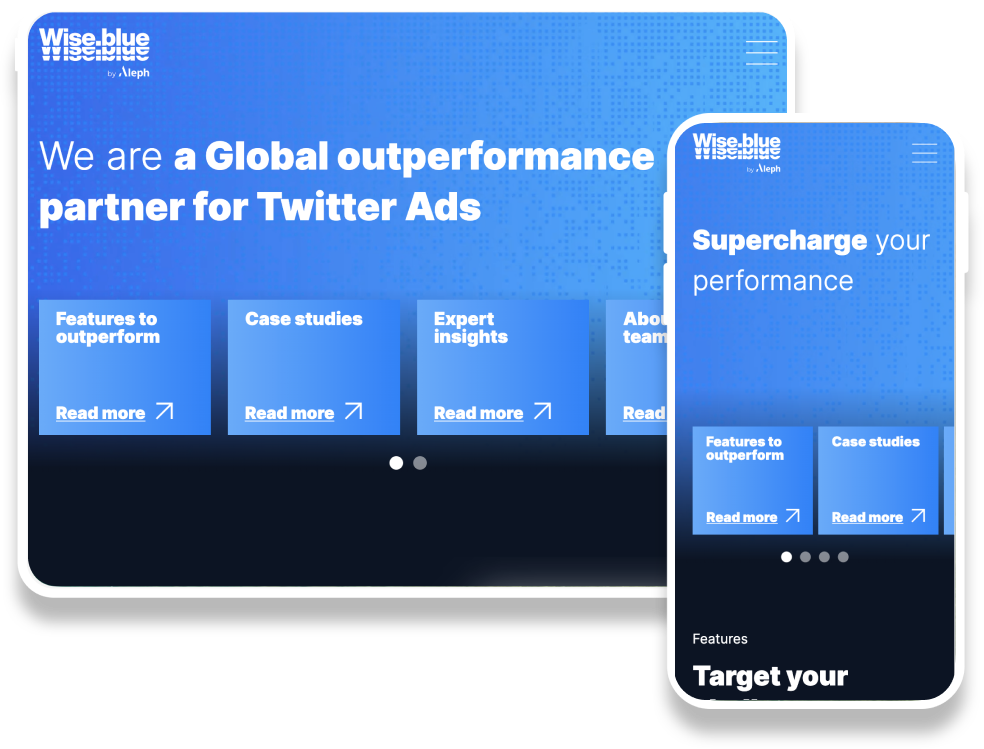 Wise.blue je blagovna znamka Aleph Holdinga, ki ponuja celovite rešitve za Twitter Ads. Zagotavlja optimalne rezultate z uporabo pametne tehnologije in vertikalnih specifičnih funkcij ter s predanimi strokovnjaki za uspešnost.